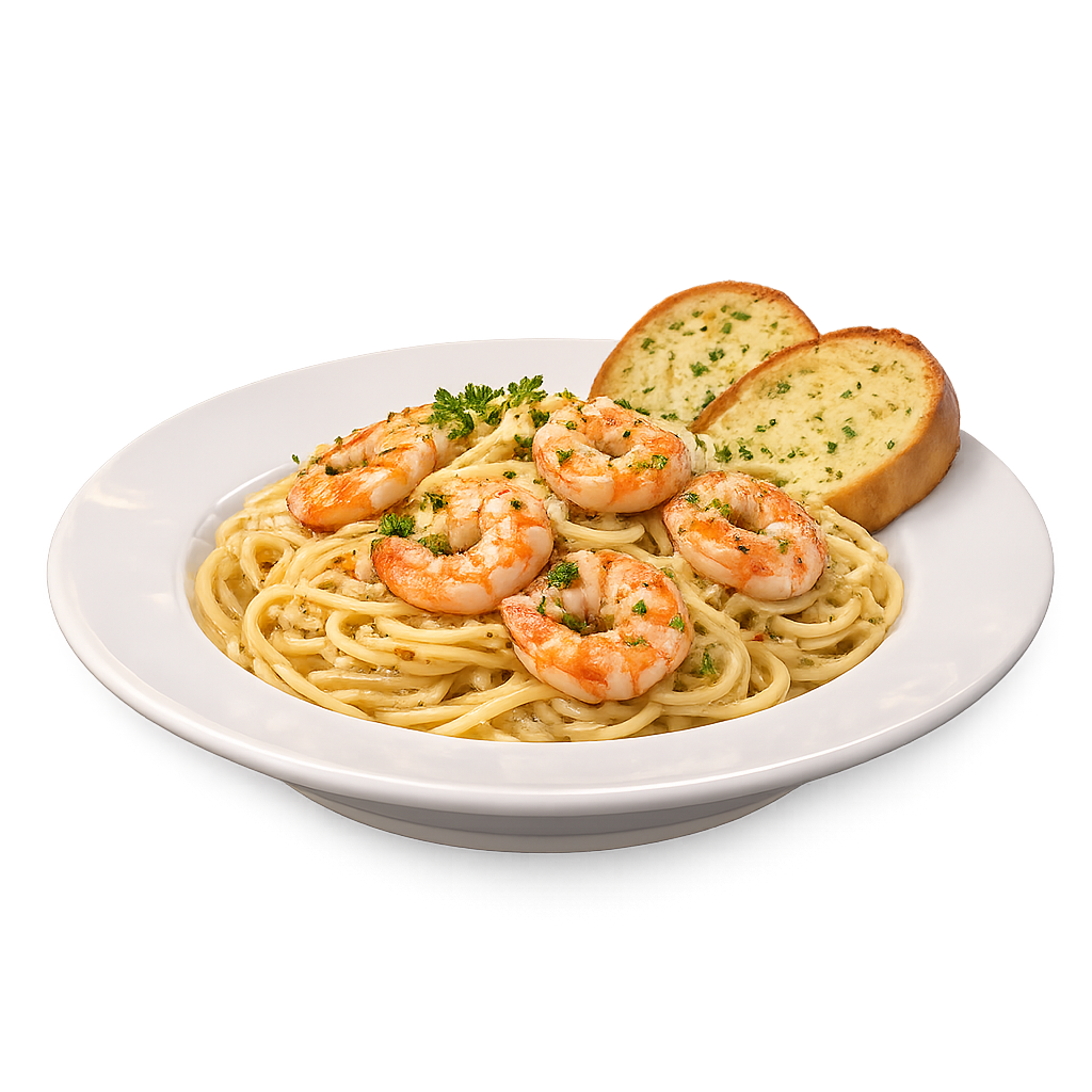 Pasta con camarones frescos combinados con salsa rosada o blanca.